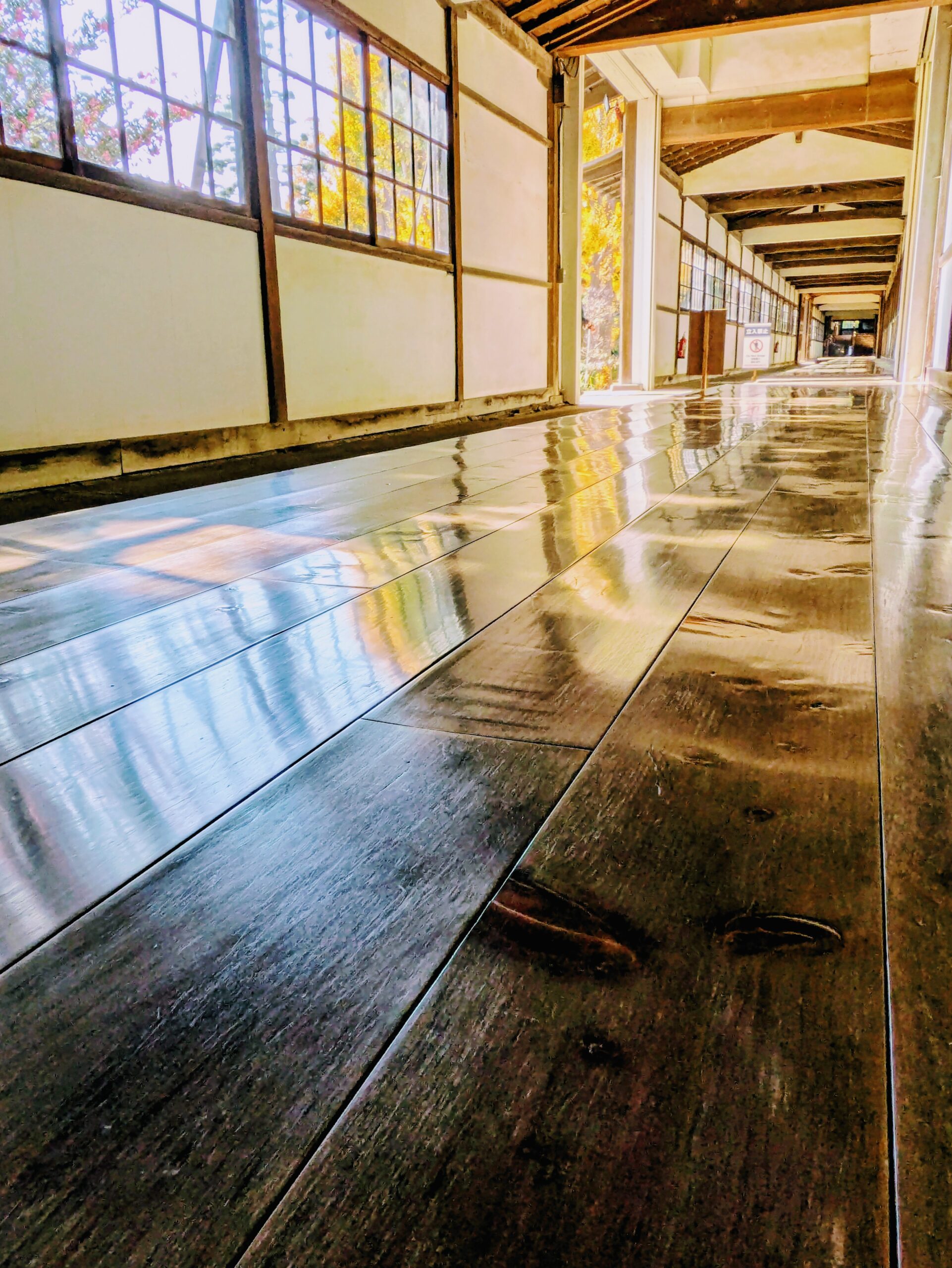 修行僧によって毎日磨かれる廊下。